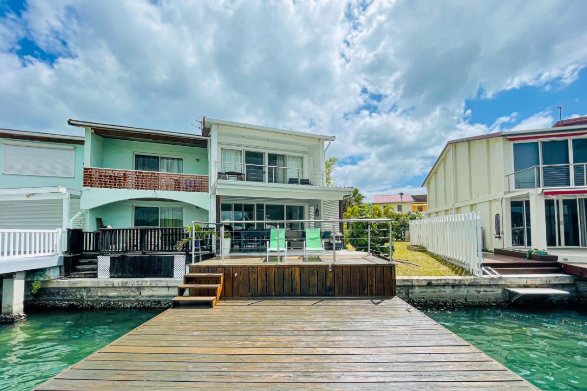 Villa 238A is a stunning two-bedroom villa on Jolly Harbour’s prized south finger. Villa 238A has been refurbished and boasts exceptional styling and state-of-the-art appliances. Anyone who loves the great outdoors will be delighted by the extended decking and broad shaded veranda from which to soak up the beautiful views over the water and sleeping Indian Hills beyond. It is also ideal for alfresco dining, entertaining or just lazing in the loungers. The glorious interior includes an open-plan lounge, dining area and fully fitted kitchen. Upstairs are two extended bedrooms with ensuite bathrooms. There is an additional guest washroom downstairs. Villa 238A is air-conditioned throughout and also has Wi-Fi, a washing machine, and a barbecue. This villa does not accept children under sixteen.